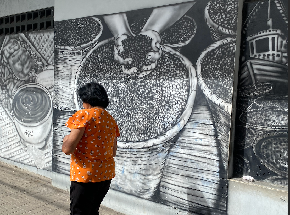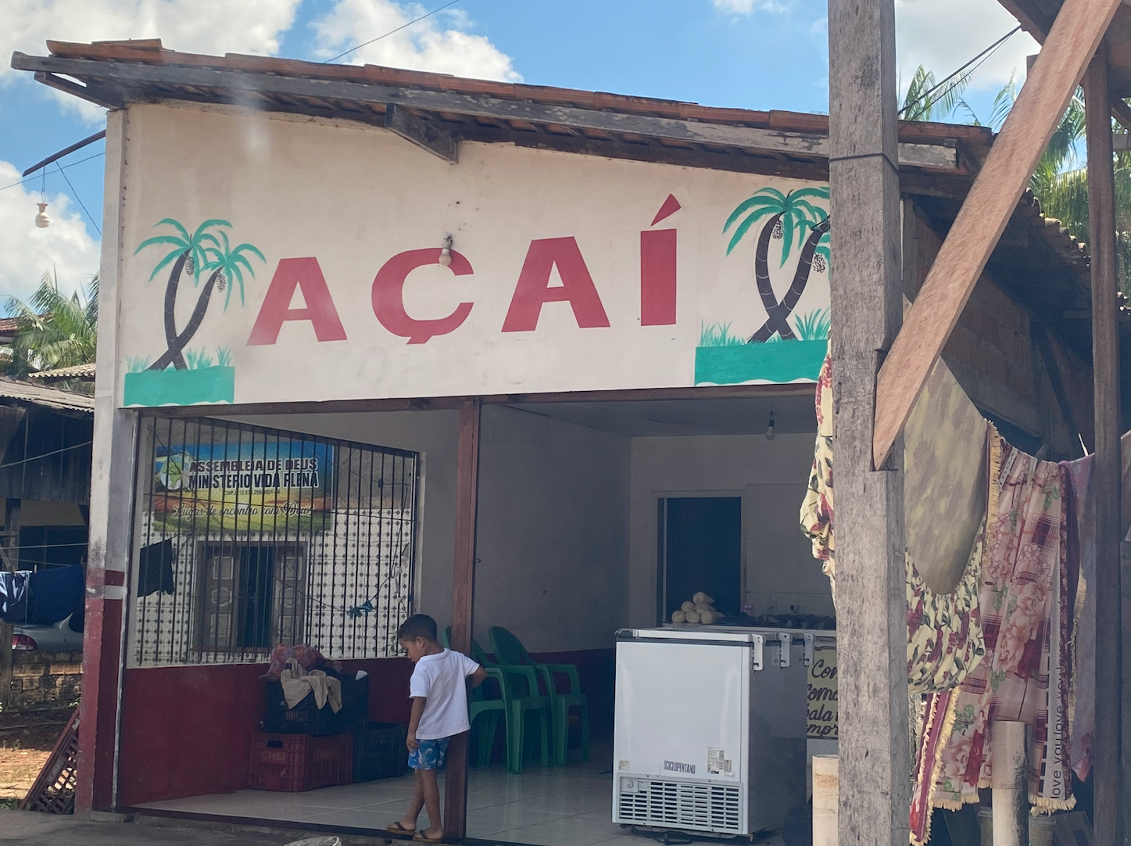 Açaí is a diet staple in Pará, served as a chilled puree alongside meals. It spoils quickly, so families regularly buy it fresh from small açaí shops across the city.